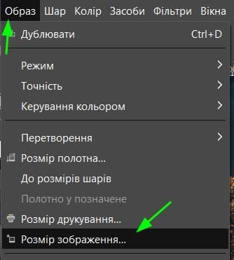 Перейдіть до меню Образ (Image) і виберіть Розмір зображення (Scale Image).
